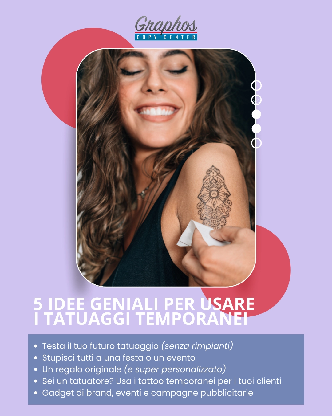 Scopri 5 modi creativi per usare i tatuaggi temporanei personalizzati: dal test pre-tattoo ai gadget aziendali.
